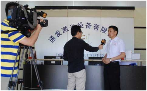 在鳳凰衛視的杜編導熱情的訪問后,通發激光副董事長王小峰帶領杜編導以及他的同事參觀生產車間,樣品車間,研發車間,了解通發生產的激光焊接機、激光打標機等。
