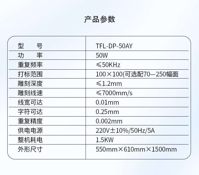 通發(fā)激光研發(fā)TFL-DP-50AY激光打標(biāo)機(jī),可針對(duì)各種金屬,塑膠進(jìn)行激光打標(biāo)加工,本激光鐳雕機(jī)配置成熟國(guó)產(chǎn)激光器,國(guó)產(chǎn)振鏡、國(guó)產(chǎn)軟件,性價(jià)比高,是普通金屬打標(biāo)機(jī)的好選擇!!!