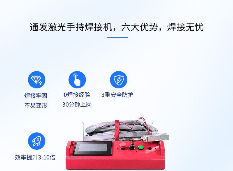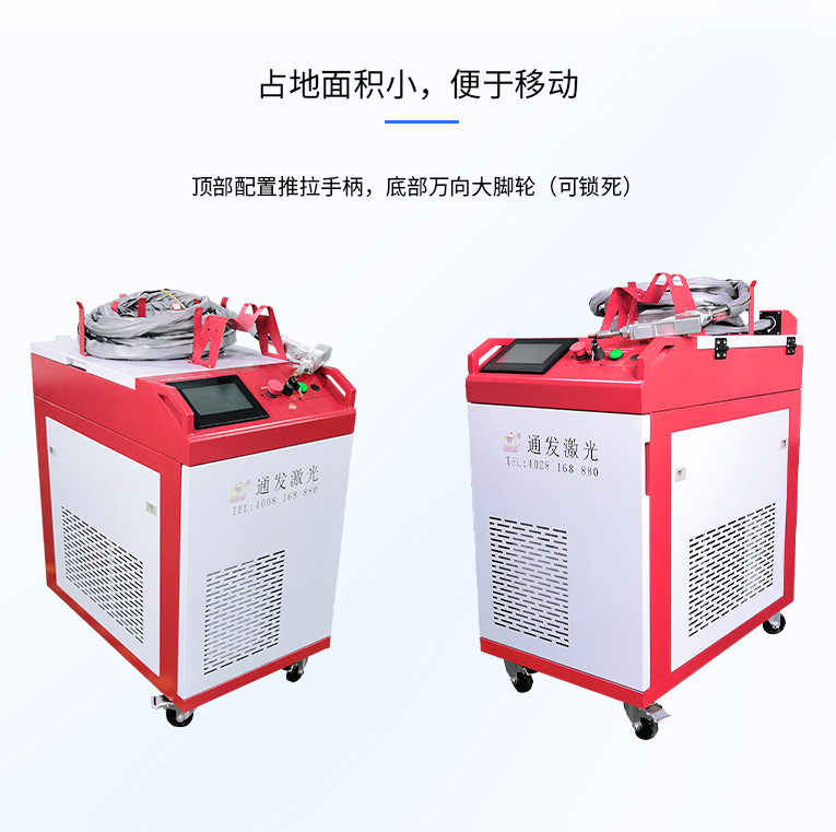 通發(fā)激光一體式手持式激光焊接機(jī),用手持式焊接槍替代以前固定光路,手拿焊接,靈活方便,焊接距離更長,克服工作臺空間的局限性,工件尺寸不統(tǒng)一時無法自動焊接的情況下使用。主要針對大型工件、固定位置如內(nèi)直角、外直角、平面焊縫焊接、焊接時熱影響區(qū)域小,變形小、而且焊接深度大,焊接牢固。是遠(yuǎn)距離焊接大工件的較為靈活的全新的焊接工藝。